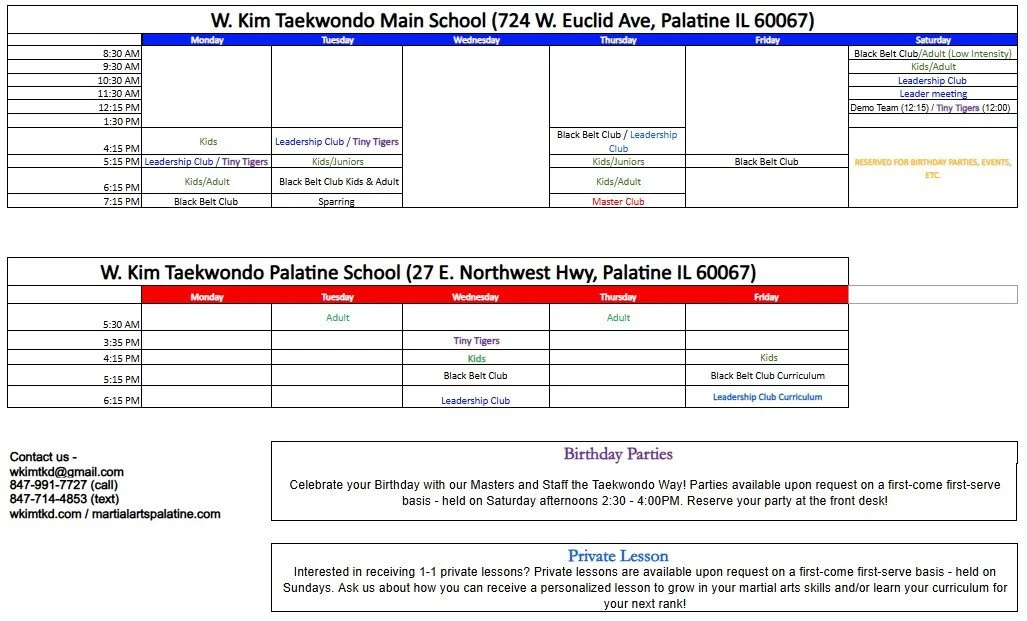 Leadership Club Classes - For black belt students in our Leadership Club program. Taught by Grandmaster Kim and Director Crystal.